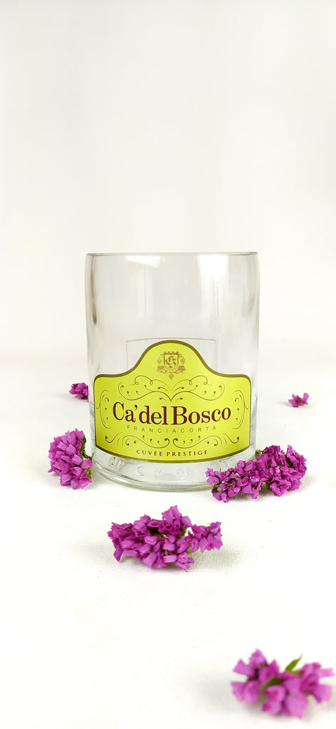 Le bottiglie vuote una volta selezionate vengono tagliate, levigate e lucidate con macchinari professionali per garantirne l'assenza di bordi taglienti e riempite a mano con la nostra cera di cocco e soia naturale.