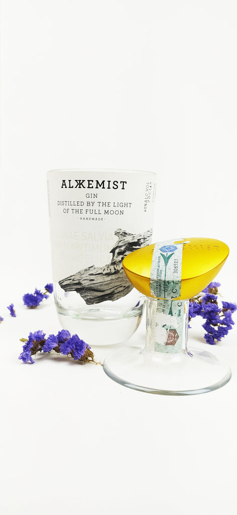 La bottiglie vuota una volta selezionata è stata accuratamente lavata, tagliata, levigata e lucidata con macchinari professionali per garantire l'assenza di bordi taglienti.