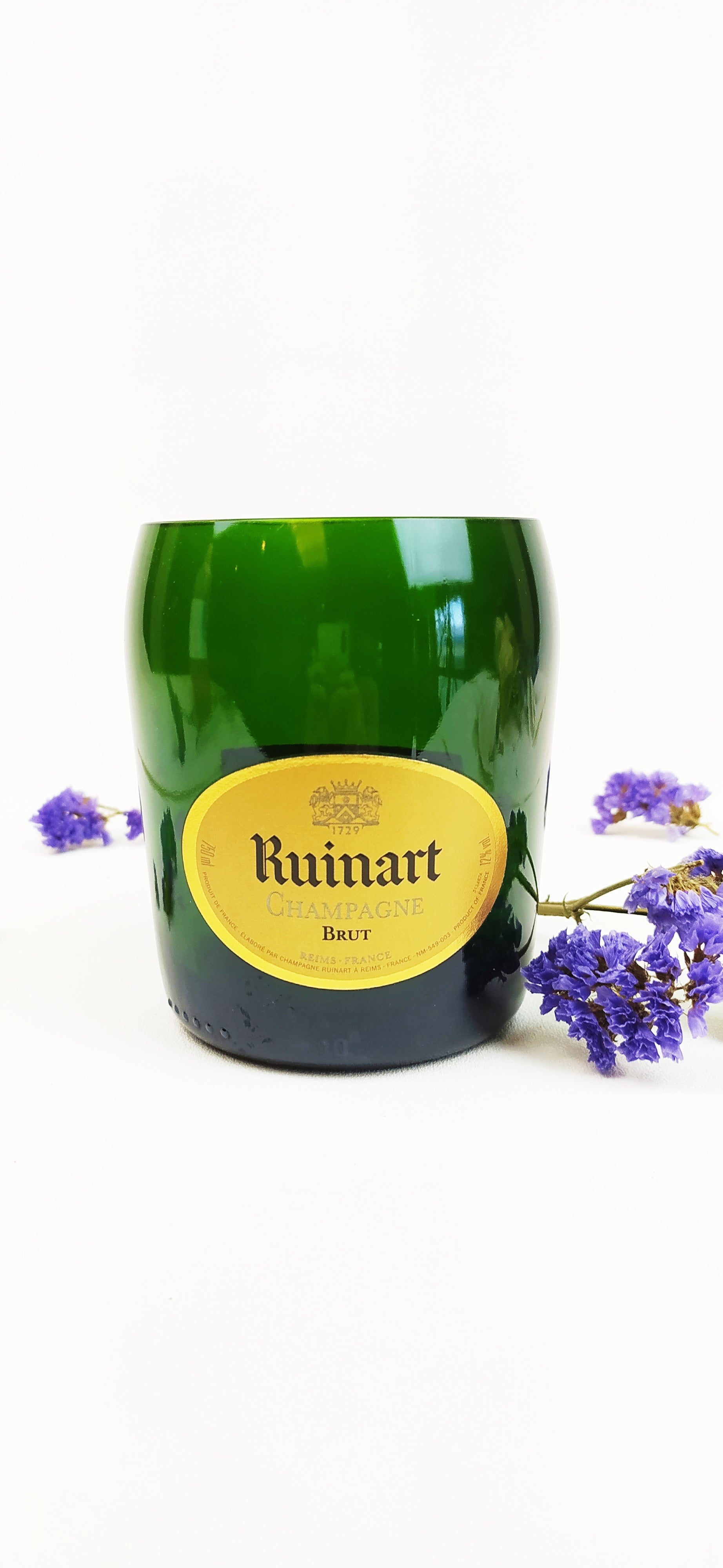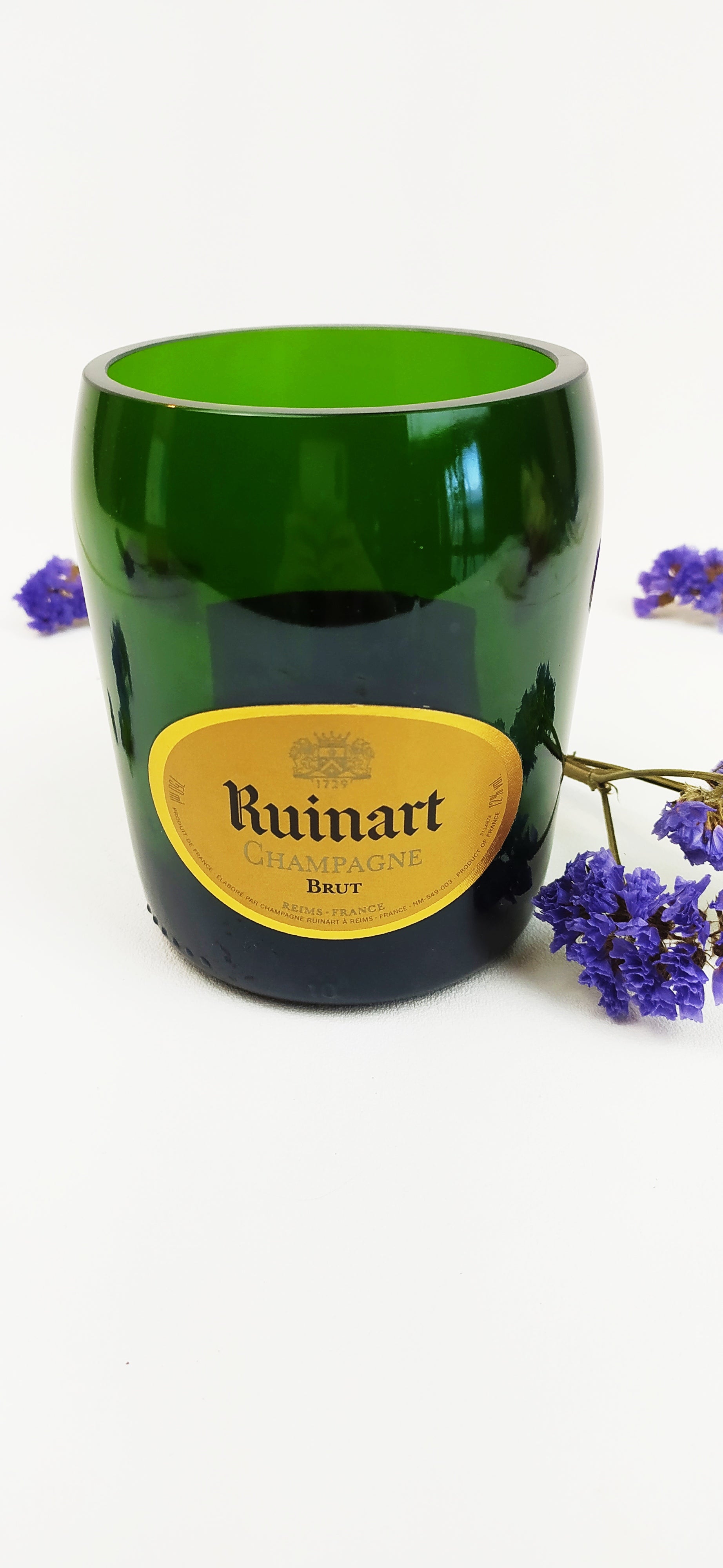 La bottiglie vuota una volta selezionata è stata accuratamente lavata, tagliata, levigata e lucidata con macchinari professionali per garantire l'assenza di bordi taglienti.