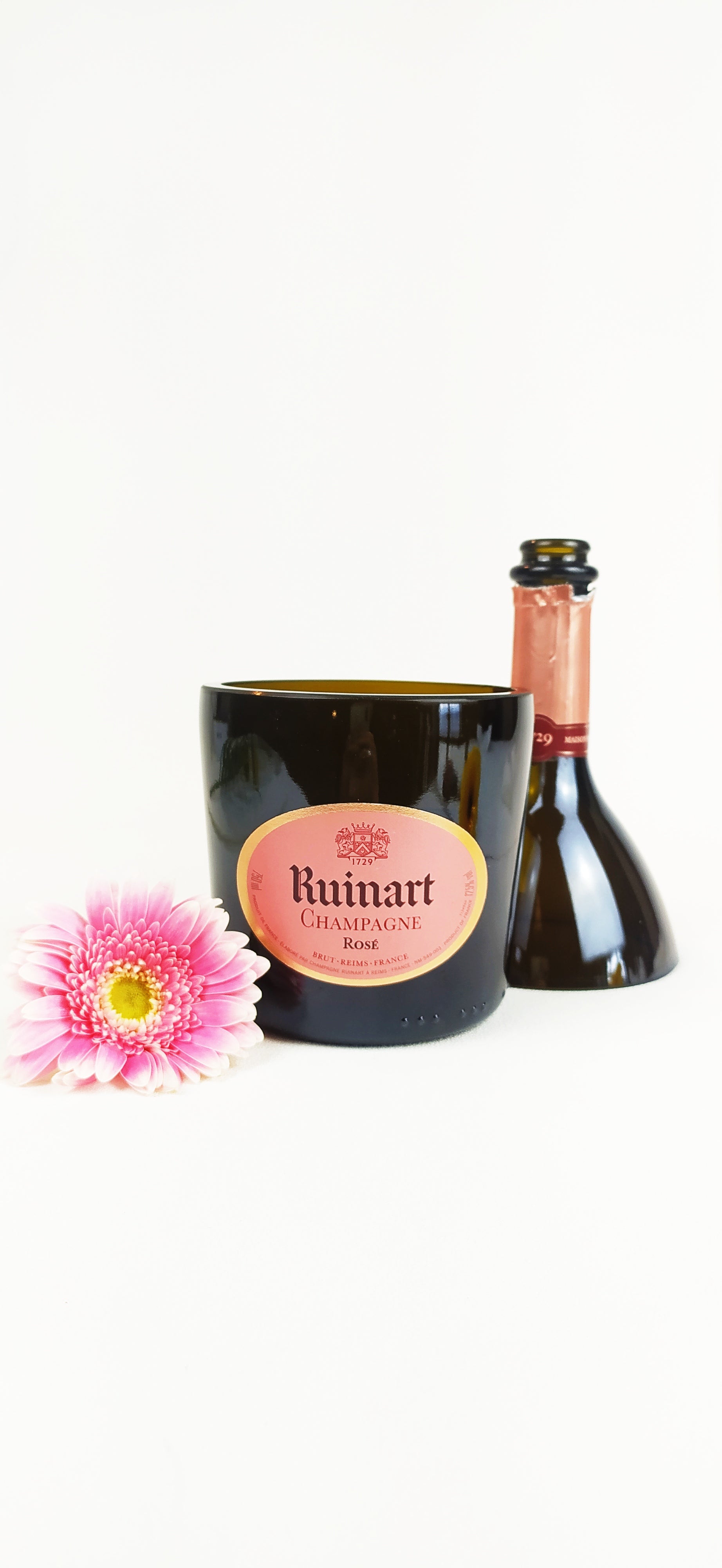 La bottiglie vuota una volta selezionata è stata accuratamente lavata, tagliata, levigata e lucidata con macchinari professionali per garantire l'assenza di bordi taglienti.