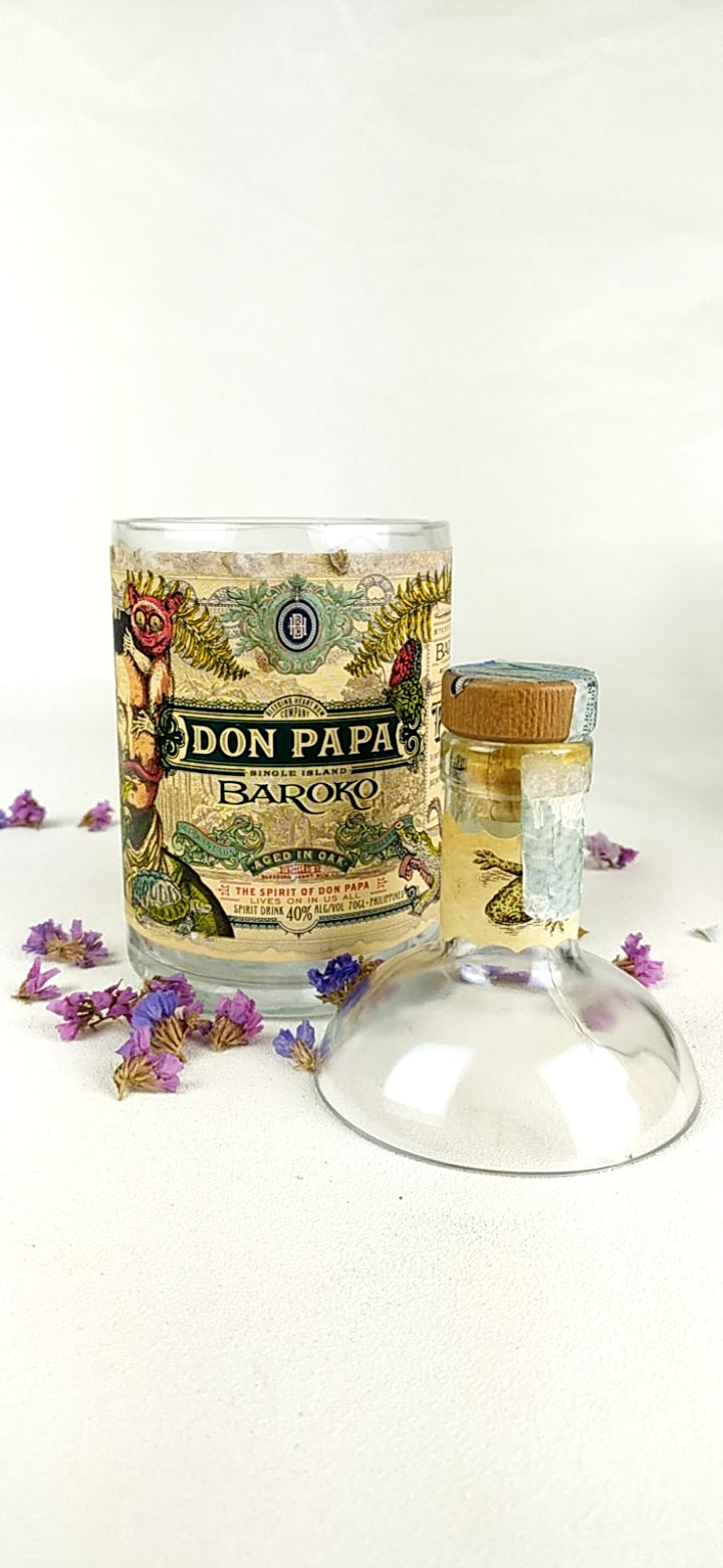 La bottiglie vuota una volta selezionata è stata accuratamente lavata, tagliata, levigata e lucidata con macchinari professionali per garantire l'assenza di bordi taglienti.