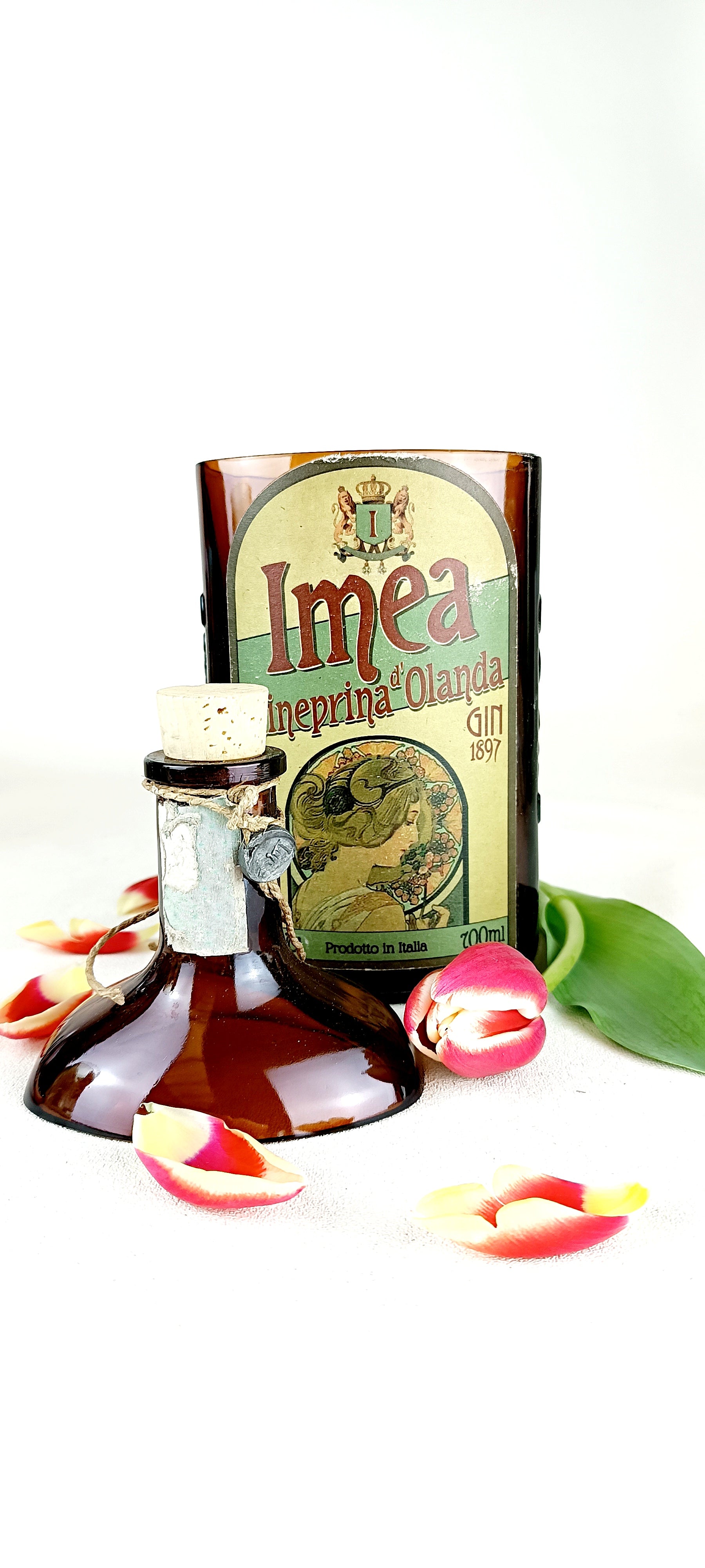 La bottiglie vuota una volta selezionata è stata accuratamente lavata, tagliata, levigata e lucidata con macchinari professionali per garantire l'assenza di bordi taglienti.