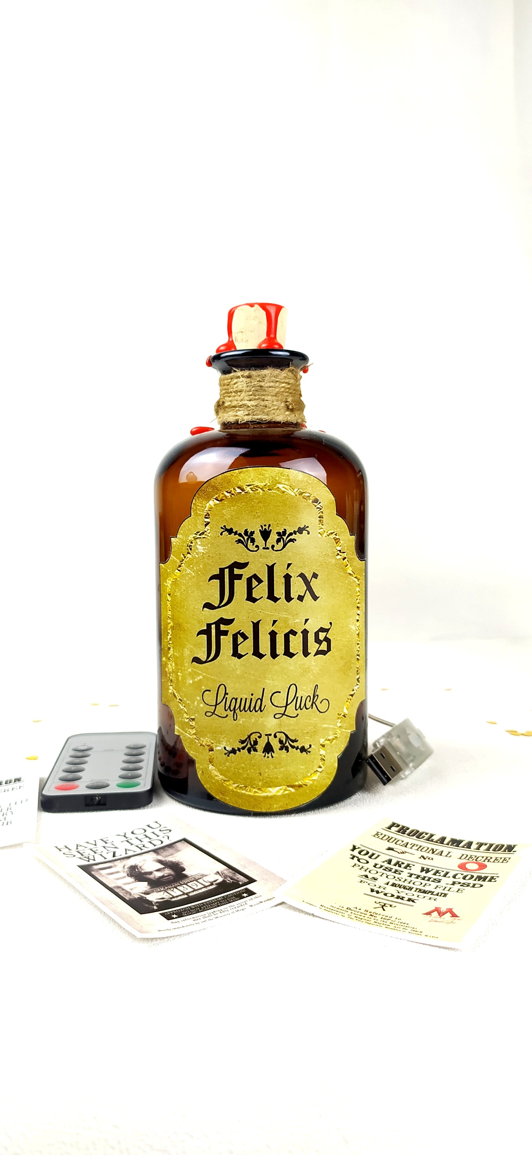 La bottiglia è stata forata, rietichettata e decorata con corda e ceralacca.