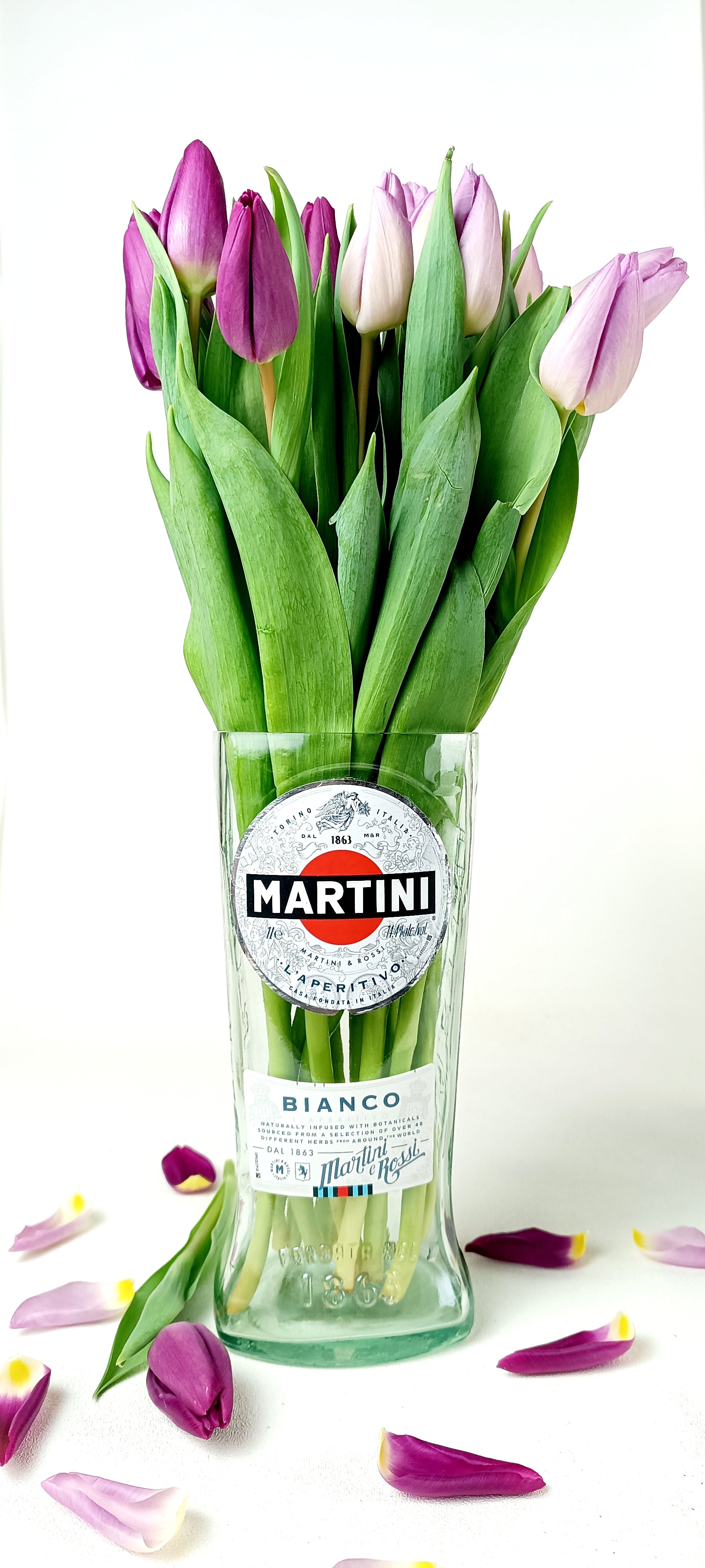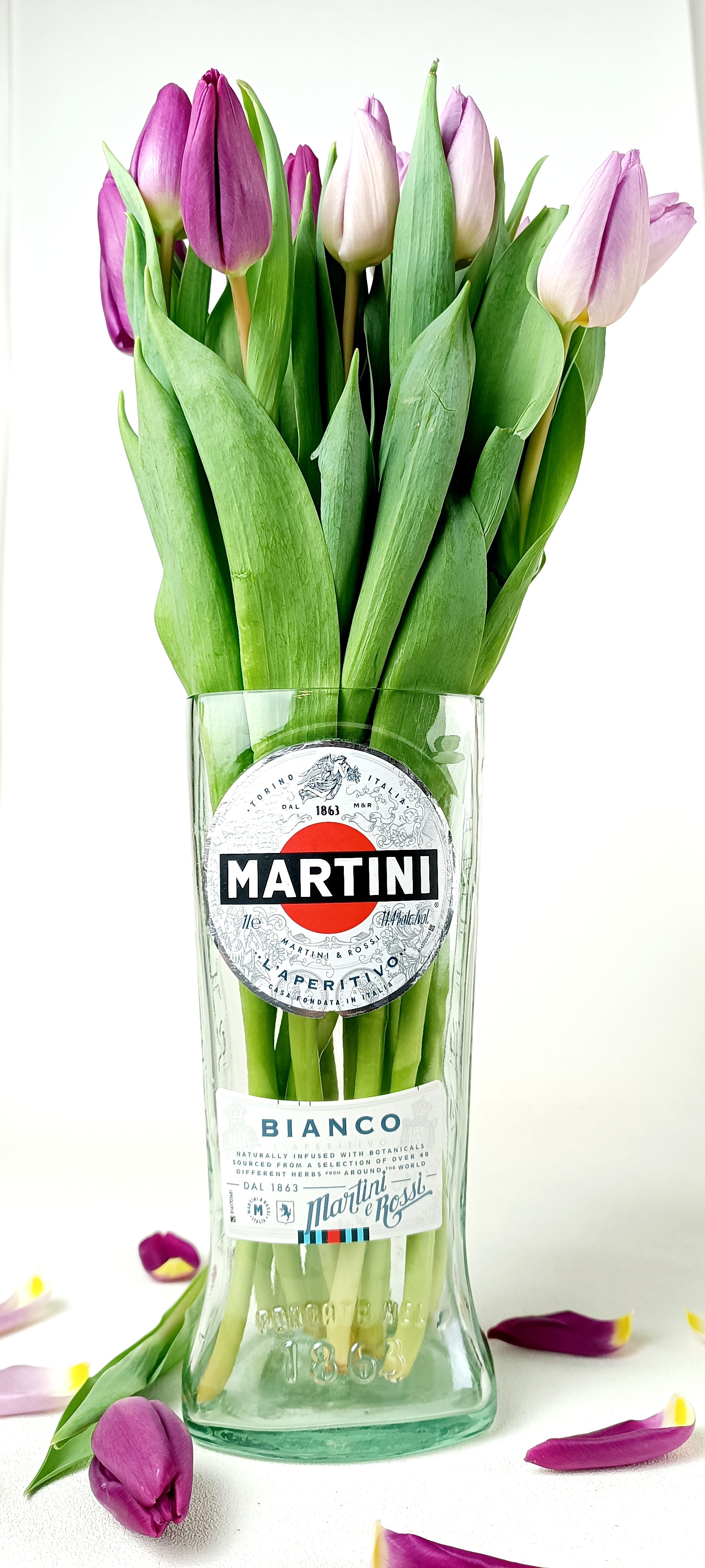 Vaso da fiori realizzato con bottiglia di Martini Bianco 🌷